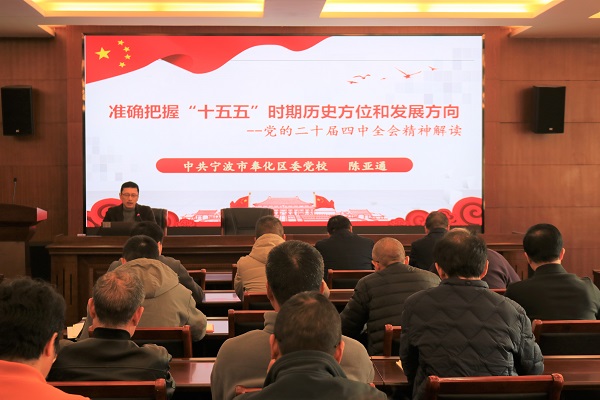 活動(dòng)伊始,全體黨員在橫山水庫會(huì)商中心進(jìn)行專題理論學(xué)習(xí)。區(qū)委黨校副校長(zhǎng)陳亞通講授黨課《準(zhǔn)確把握“十五五”時(shí)期歷史方位和發(fā)展方向——黨的二十屆四中全會(huì)精神解讀》,課上圍繞黨的二十屆四中全會(huì)的重要意義、核心要義與實(shí)踐要求作出系統(tǒng)的分析解讀,為全體黨員將全會(huì)精神轉(zhuǎn)化為推動(dòng)工作的強(qiáng)大動(dòng)力奠定堅(jiān)實(shí)的理論基礎(chǔ)。